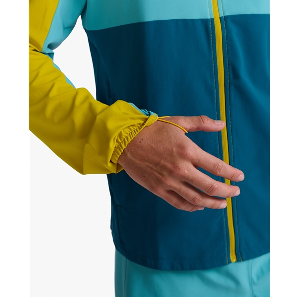 2Xu Aero Jacket Men on miesten juoksutakki, joka on valmistettu vettä hylkivästä kudotusta kankaasta, jossa on joustoa. Se sopii täydellisesti juostessa kylmempien aamu- tai iltakyytien aikana. Takissa on kudottu kangas, jossa on joustava ja säädettävä 3-osainen huppu sekä ympäristöystävällinen C6 DWR-pintakäsittely, joka kestää sadetta. Takapuolella on tuuletus hengittävyyden parantamiseksi ja edessä on vetoketjulliset taskut korttien tai avainten säilyttämistä varten juoksun aikana. Heijastavat logot ja yksityiskohdat takaavat 360 asteen näkyvyyden hämärässä.