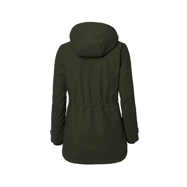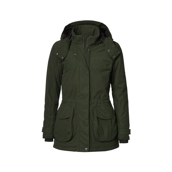 Basset-takki on naisten topattu, tuulen- ja vedenpitävä takki. Takissa on pehmeä harjattu päällyskangas kierrätyspolyesteriä. Naisellinen takki on erittäin monikäyttöinen monenlaiseen metsästykseen. Siinä on tärkeitä toimintoja, kuten irrotettava huppu, kaksi radiotaskua, hihojen alla tuuletus ja ripustustaskut. Basset-takissa on takatasku, edessä kaksi nappilistaa, napoleontasku, jonka sisällä turvatasku, sekä sisäpuolella kaksi verkkotaskua. Säädettävä vyötärö. Naisten Basset-takki ja -housut muodostavat yhdessä lämpimän metsästyspuvun, joka on hiljainen ja tuulen- ja vedenpitävä.