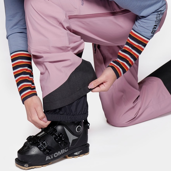 Elevenate W Pure Pants ovat tekniset naisten kuorihousut, jotka on kehitetty keskittyen täydelliseen istuvuuteen muutamilla erittäin toimivilla yksityiskohdilla sinulle, joka seikkailet tuntureilla offpiste-kohteissa. Lasketteluhousut on valmistettu Gore-Tex-materiaalista sinetöidyillä saumoilla, mikä tekee housuista luotettavasti tuulen- ja vedenpitävät. Ohut, flanellimainen vuori tarjoaa hieman lisälämpöä painoa lisäämättä. Housujen lahkeensuissa on myös Schoeller Keprotec -vahvikkeet. Rento muotoilu korkealla vyötäröllä ja esitaivutetuilla polviosilla tarjoavat paremman liikkumavapauden, samalla kun sivujen tuuletusvetoketjut mahdollistavat ilmavirran lisäämisen tarvittaessa. Housuissa on myös useita taskuja, mukaan lukien lahkeiden suuret, kiilatut cargo-taskut, vetoketjutasku lumivyörylähettimelle sekä vetoketjullinen takatasku. Lisäksi lasketteluhousujen vyötärössä on tarranauhasäätö, lumilukko sekä muotoillut lahkeensuut, jotka toimivat hyvin siteiden kanssa. Vyötärön painonapit mahdollistavat housujen kiinnittämisen Elevenate-takkiisi.