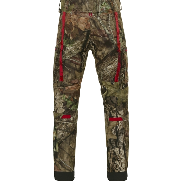 palkeella, jossa on tilaa mm. koiran talutushihnalle. Oikeanpuoleisessa lahjetaskussa on panospidike. Taskujen takana on suuret ilmanvaihtoaukot kansilla. Vyötärökaitaleen sisäpuolella on kumipintainen vyötärönauha, jonka ansiosta housut pysyvät hyvin paikoillaan. Polven alla on kiristämismahdollisuus, joka tarjoaa optimaalisen liikkumavapauden. Lahkeensuissa on hihnat, joiden ansiosta lahkeet saa tarvittaessa ylös