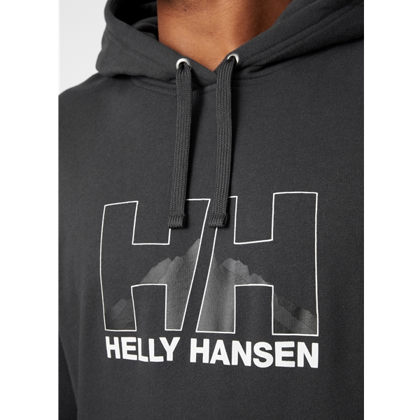 Helly Hansen Nord Graphic Pull Over Hoodie on klassinen miesten huppari puuvillasekoitteesta. Tämä rento huppari on tehty mukavuutta varten. Helly Hansen käytti 80 % puuvillaa ja 20 % polyesteriä, mikä tekee siitä pehmeän ja pitää muotonsa. Vuonoja ja vuoria sisältävä painatus on kunnianosoitus Helly Hansenin kotimaan Norjan mahtavalle luonnolle.