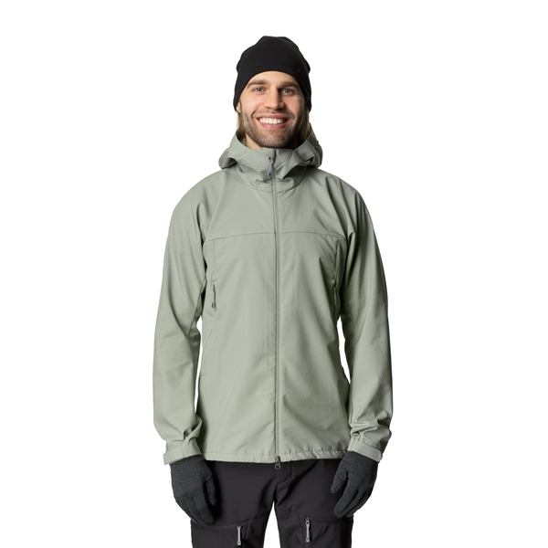 Miesten Pace Jacket on valmistettu uudesta materiaalista nimeltä Octa C9 Ripstop. Siinä on sileä ja myötäilevä ulkopuoli ja sisäpuoli avoimilla filamenttikuiduilla, joka luo kevyesti eristävän efektin estämättä hengittävyyttä. Kangas pysäyttää tuulen ja on käsitelty fluorihiilivapaalla, vettä hylkivällä kyllästeellä, joka suojaa sinua kevyemmältä lumisateelta ja sadekuuroilta. Koko vaatteen idea on antaa sinulle hyvä suoja säältä, mutta ei koskaan estämällä vaatteen kykyä hengittää siten, että vartalosi voi työskennellä kuumenematta liikaa. Takissa on kaksi sivutaskua sekä säädöt hupussa ja vaatteen helmassa.
