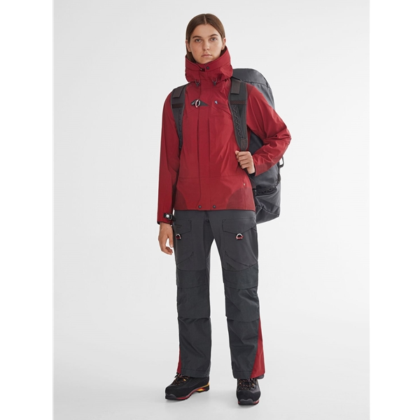 Klättermusen Brede 2.0 Jacket W’s on Klättermusenin vankin ja luotettavin naisten kuoritakki, joka on suunniteltu erityisesti talvimatkoille ja retkille. Tämä takki on ensisijainen valinta monille ammattioppaille kestävyytensä ja vankan rakenteensa ansiosta. Takki on vahvistettu altistuvien osien, kuten kyynärpäiden, lonkkien ja hartioiden, kulumista vastaan Duracoatilla, joka suojaa esimerkiksi kiipeilyvaljaista tai repuista tulevalta kitkalta. Sisäinen ja ulkoinen tuulisuoja suojaa vetoketjua ja luo lämpöpuskurin, kun taas takin säädöt on suunniteltu erityisesti käytettäväksi käsineiden kanssa. Takissa on myös 3D-säädettävä huppu, joka seuraa pään luonnollisia liikkeitä rajoittamatta näkökenttää, monitoiminen tuuletusjärjestelmä, joka mahdollistaa tuuletuksen säädön tarvittaessa, sekä turvalukko D-renkaalla, joka toimii sulkijana jos vetoketju lakkaisi toimimasta. Brede 2.0 -takin leikkaus on suunniteltu siten, että sen alla voi olla lämmittävä kerros, ja kun takki yhdistetään Freke-housuihin, saat täydellisen retkiasun.