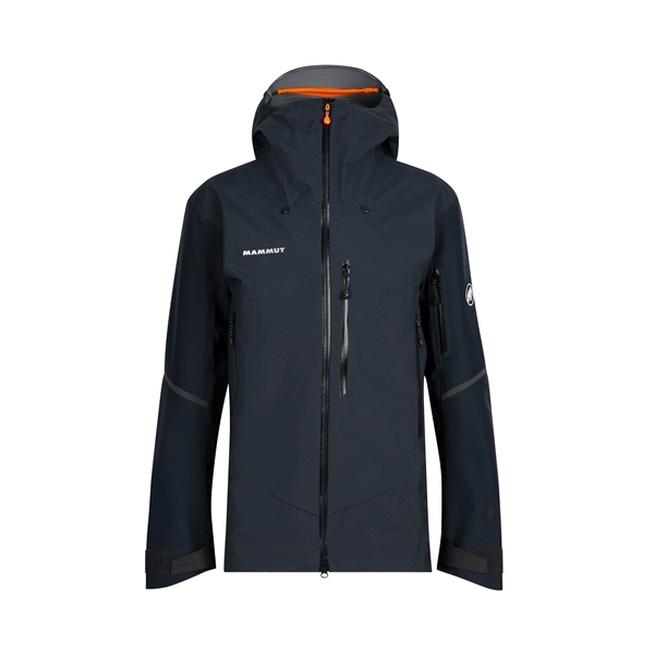 Mammut Nordwand Pro Hs Hooded Jacket Men on kestävä miesten kuoritakki ääriolosuhteisiin. Hiihtotakki on valmistettu Gore-Tex® Pro -kankaasta, jossa on ”most robust” -teknologia, joka tarjoaa täydellisen yhdistelmän sääsuojaa ja kulutuskestävyyttä. Siinä on myös vyöhykepintaiset Gore-Tex®-venytyskankaasta valmistetut insertit, jotka antavat lisää liikkumisvapautta, ja 8 mm:n Gore-SEAM®-teipatut insertit (vyöhykkeittäin) saumojen minimoimiseksi. Kehräämällä värjätty selkä- ja pintakangas lisäävät kestävyyttä, kun taas säädettävät hihansuut sopivat hanskoihin ja niissä on laadukkaat Hypalon-koukkukiinnikkeet. Takissa on myrskynkestävä, kypärän kanssa yhteensopiva huppu, joka on helppo säätää pysty- ja vaakasuunnassa myös hansikkaita käytettäessä. Cohaesive®-tulpilla varustettu yhdellä kädellä säädettävä kiristysnauha takaa tarkan helman ja hupun säädön, ja sitä voidaan käyttää myös hanskoja käytettäessä. Takissa on irrotettava lumihame, jossa on liukumaton pito ja kaksoispainikekiinnitys yksilöllistä säätöä varten, ja siinä on pehmeä mikrofleece-leukasuoja, rintatasku, jossa on vettähylkivä vetoketju, vedenpitävä YKK VISLON® 2-suuntainen etuvetoketju ja vetoketjullinen rinnan sisätasku. Kaksi vedenpitävää, kiipeilyvaljaiden kanssa yhteensopivaa ulkotaskua, kaksi suurta sisätaskua, hihatasku vedenkestävällä vetoketjulla ja kainalotuuletus vedenkestävällä vetoketjulla täyttävät kaikki mahdolliset tarpeet.