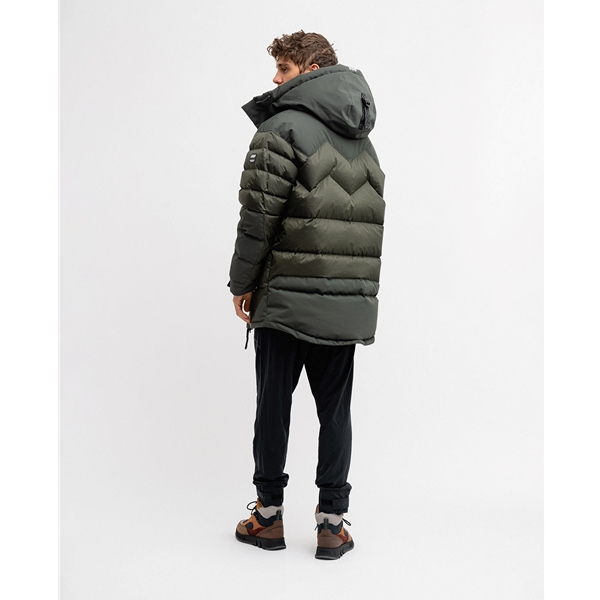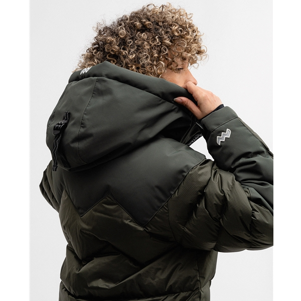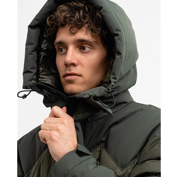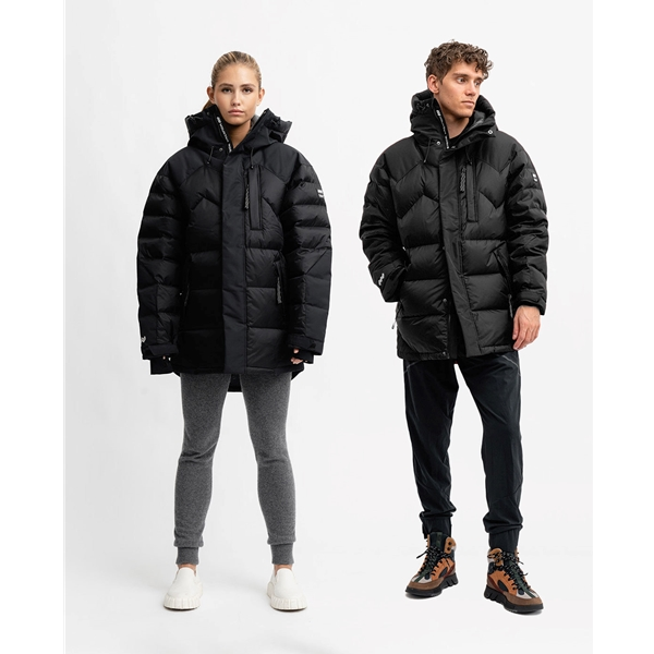 Suuressa untuvavuoratussa hupussa on kiristysnauhat säädettävyyttä ja optimaalista istuvuutta varten. Hihansuissa on joustavat sisähihansuut ja säädettävät tarranauhat, jotka pitävät kylmän tuulen ja lumen poissa.