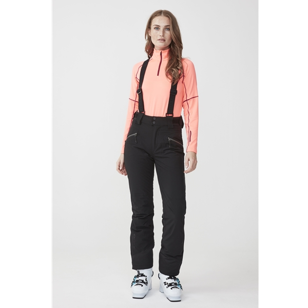 Tenson Zenda on klassinen, suorituskykyinen hiihtohousu naisille. Kevyesti vuoratut ja miellyttävän joustavat housut, joiden kestävä ulkokangas perustuu Tensonin ainutlaatuiseen tuulta ja vettä hylkivään stretch-kalvoon. Housujen suorituskykyisten ominaisuuksien ansiosta ne hengittävät ja suojaavat elementeiltä ilman, että hiki tai kosteus haittaavat niitä. Housuissa on valmiiksi kaarevat polvet, säädettävä vyötärö ja lahkeensuut, joissa on vetoketju, lumilukko ja vettähylkivät, lukittavat vetoketjut. Irrotettavat housunkannattimet ja taskut, joiden sisäpuoli on pehmeää fleeceä, tekevät tästä rinteessä todella suorituskykyisen klassikon.